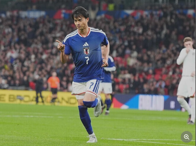 对阵英格兰时攻入制胜球的三笘薰。
