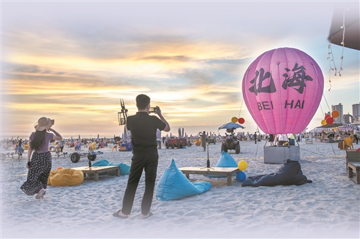 “乘着旅拍东风,目前北海许多景区都推出了旅拍服务,整体市场呈现欣欣向荣之势。”北海市旅游文体局有关负责人表示,接下来将持续挖掘本地特色元素,把侨港小镇、银滩、海丝首港、涠洲岛等景区景点纳入旅拍场景体系,培育丰富多彩的主题旅拍线路,推出更多主题旅拍活动,推动“旅拍+文旅”的高质量发展。