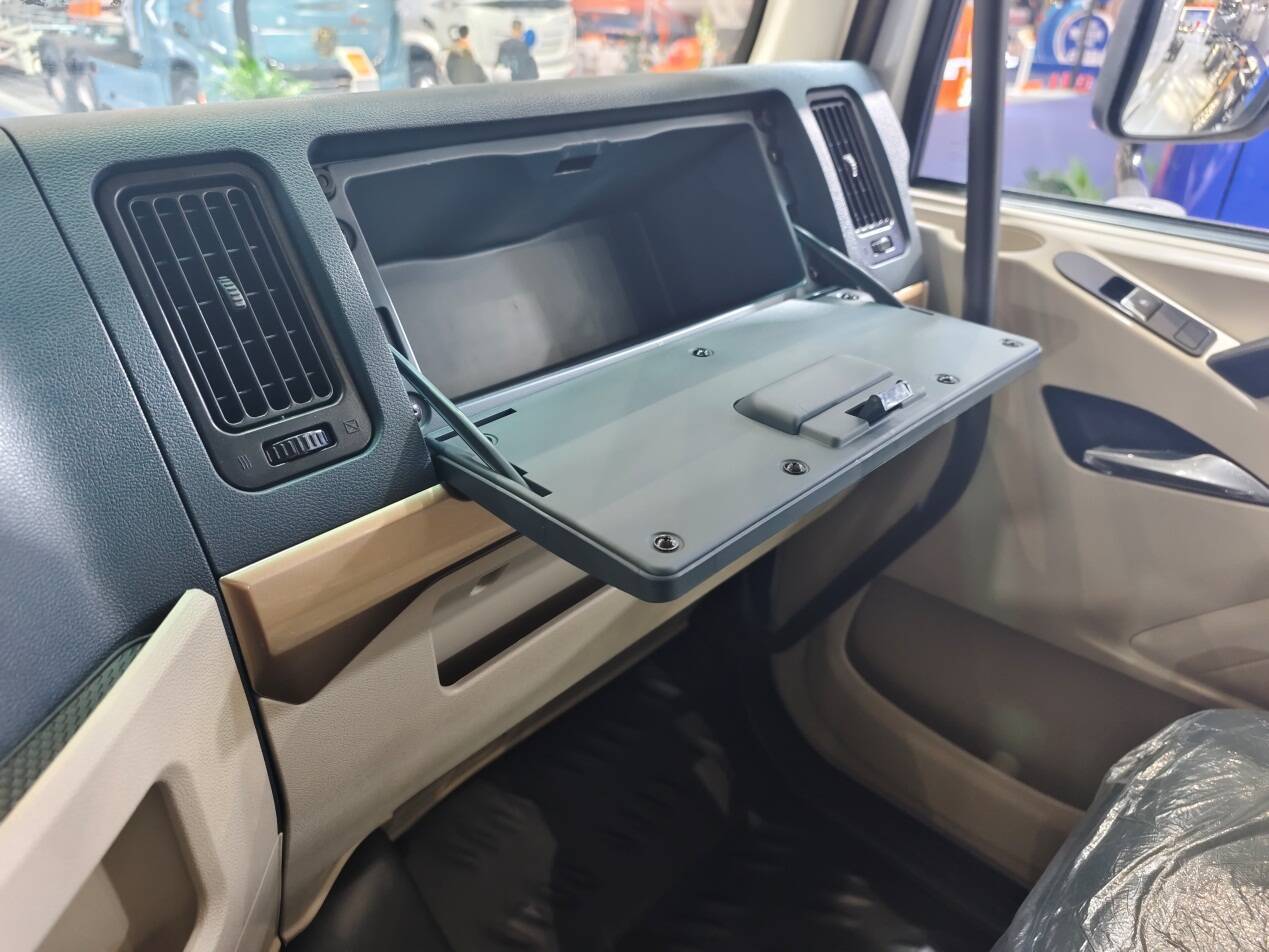 副驾驶前方设有储物箱,盖板打开后位置水平,可以作为临时桌板。