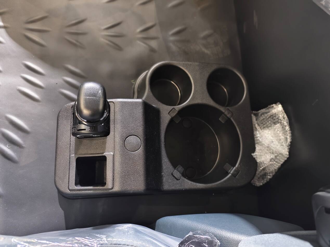 主驾座椅右侧设有驻车制动手柄、储物槽和暖壶架