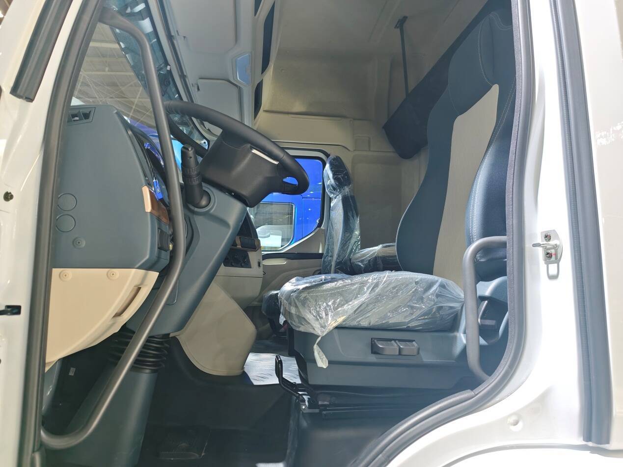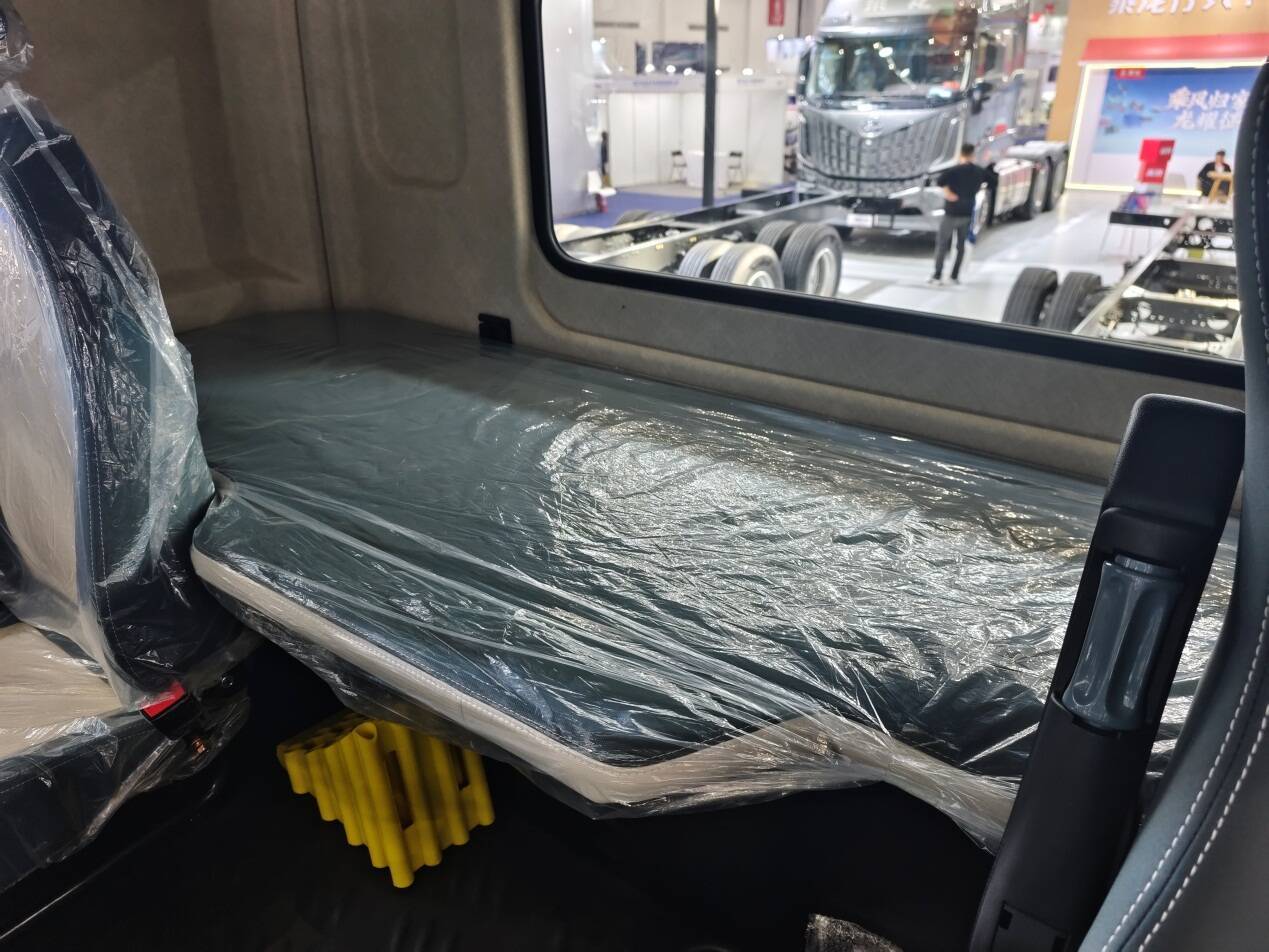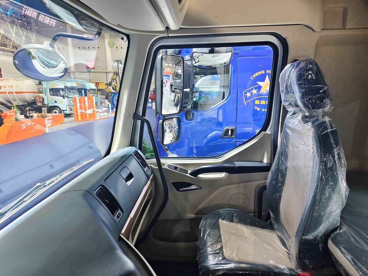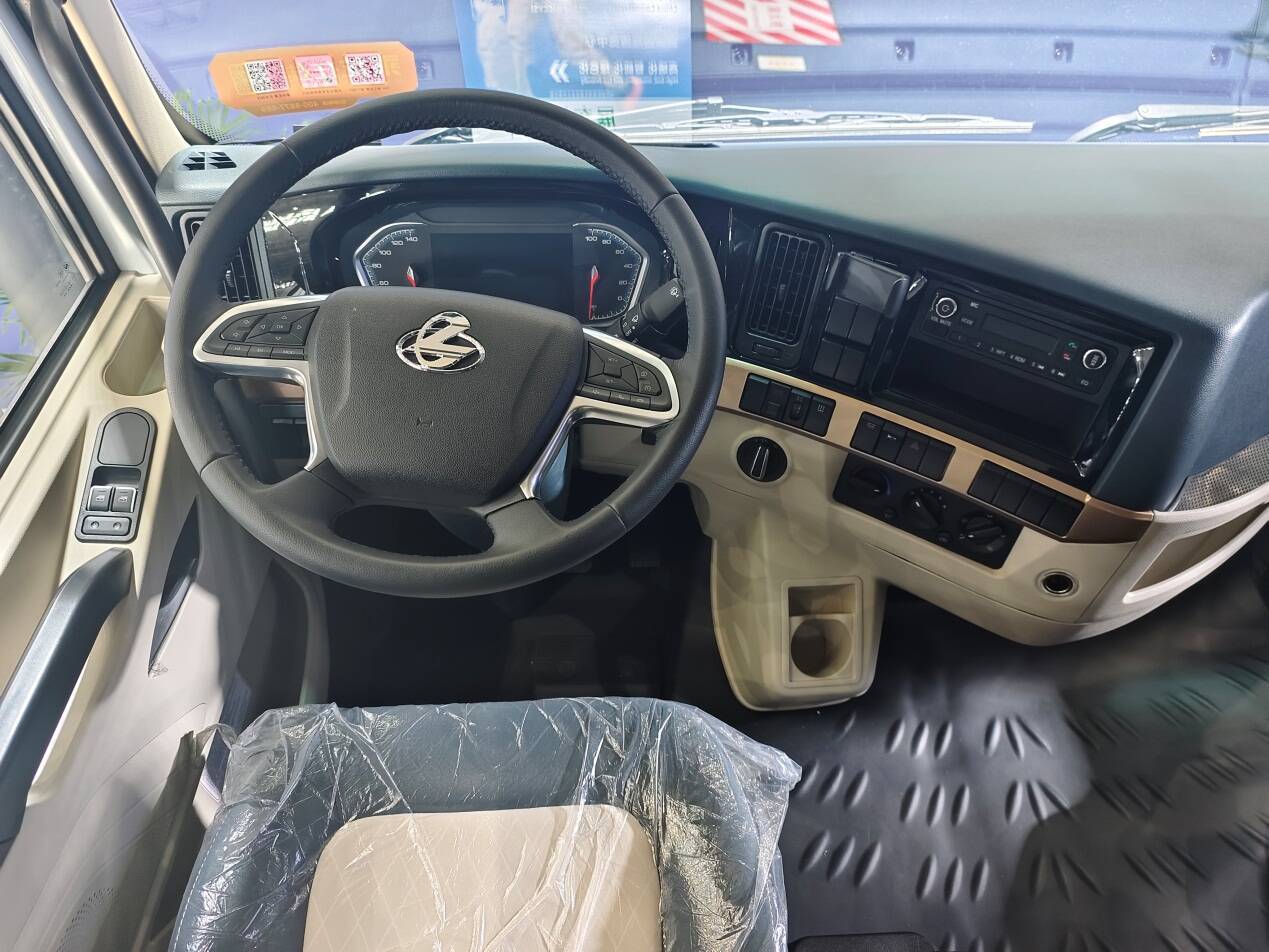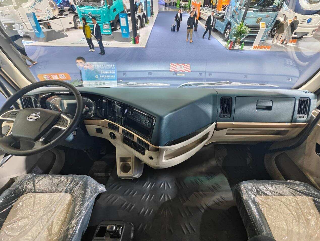 乘龙H5新能源大单桥车型采用乘龙H53高顶驾驶室,驾驶室宽2300mm,外形美观,车内空间充足。内饰颜色以上黄下黑为主,配色较为明亮。车辆带有定速巡航系统、行驶记录仪、乘龙V+新能源车联网2.0系统,有利于车辆安全高效运行。驾驶室后部设有卧铺,尺寸宽大,能给车上人员带来较为舒适的休息空间。